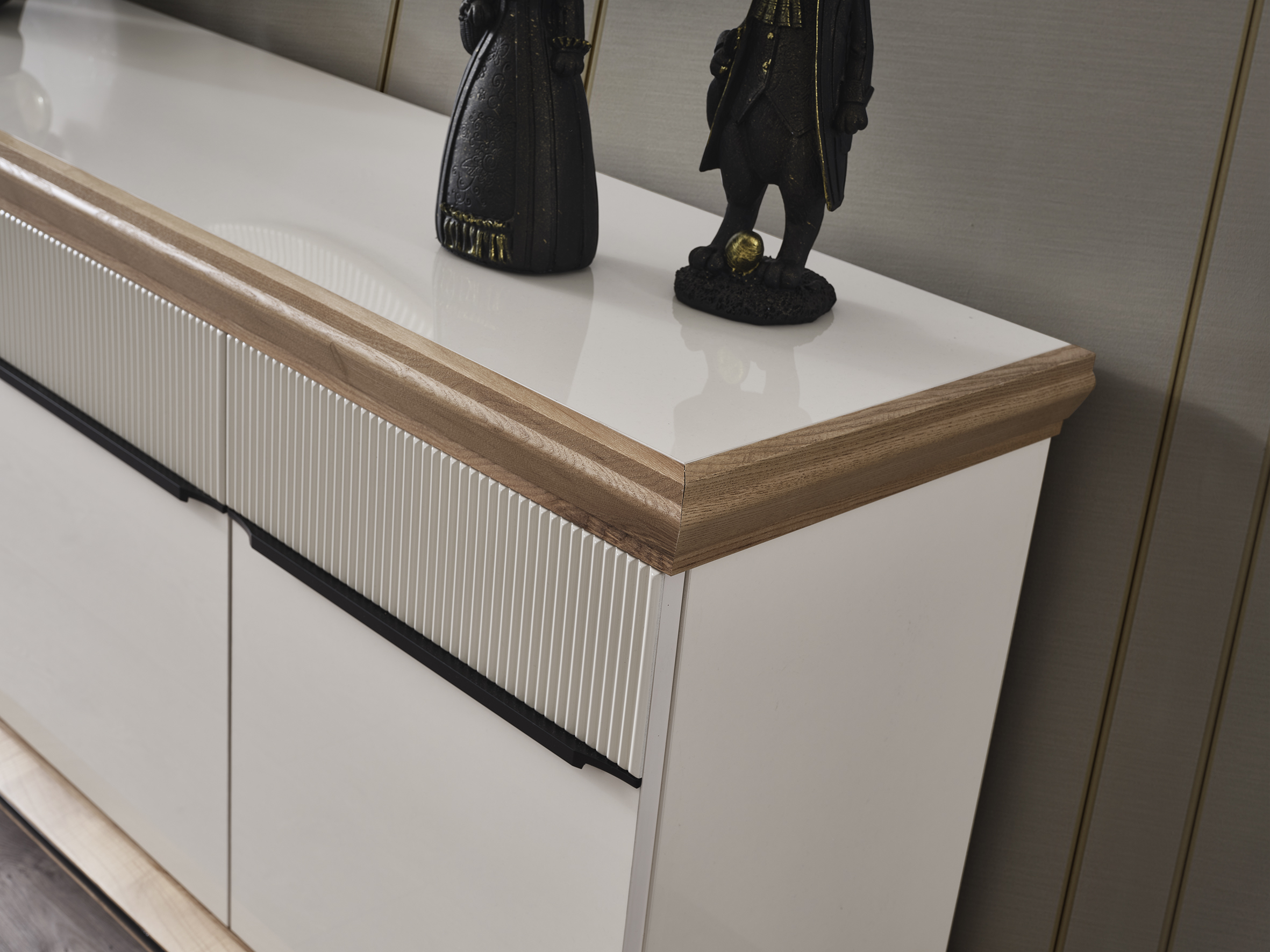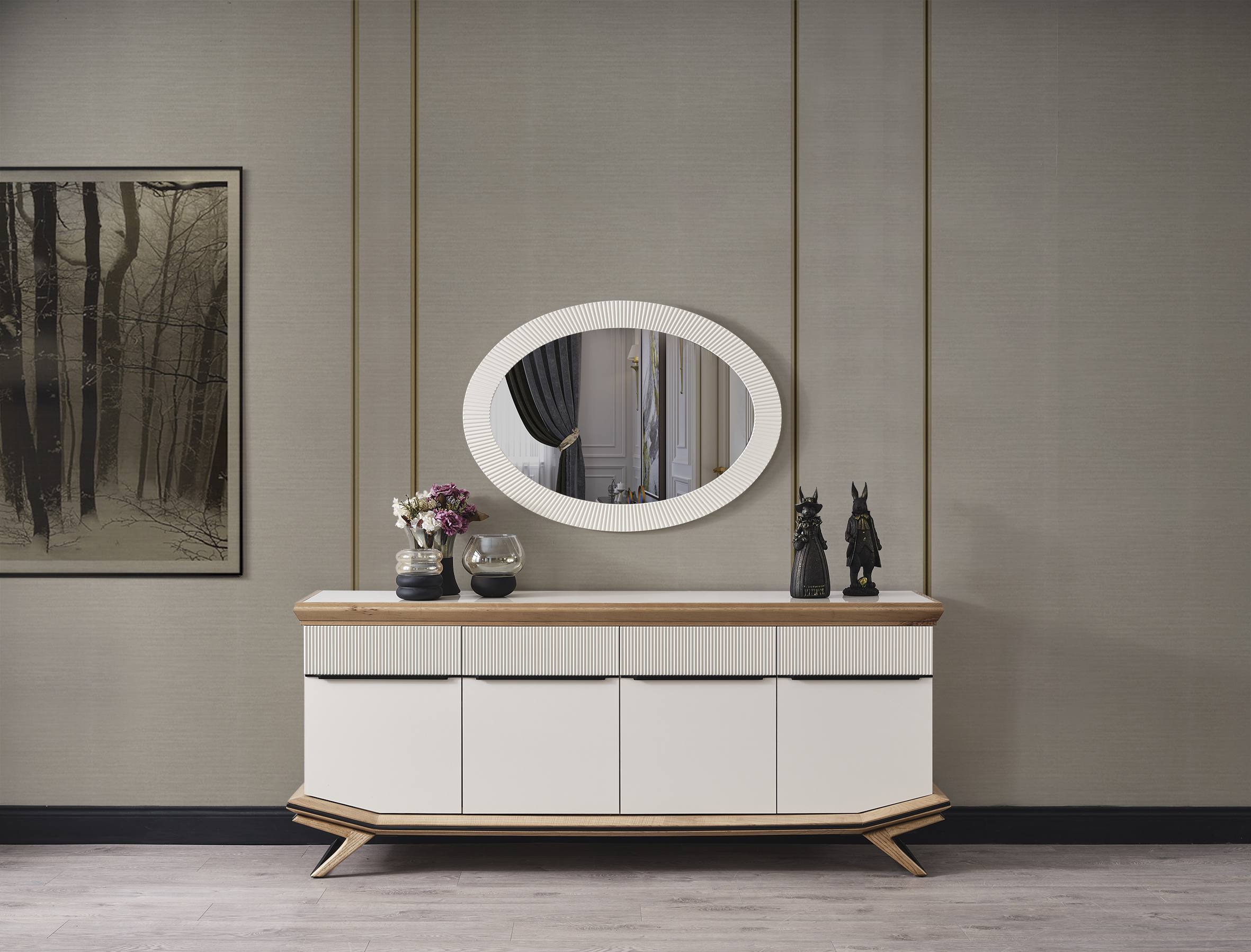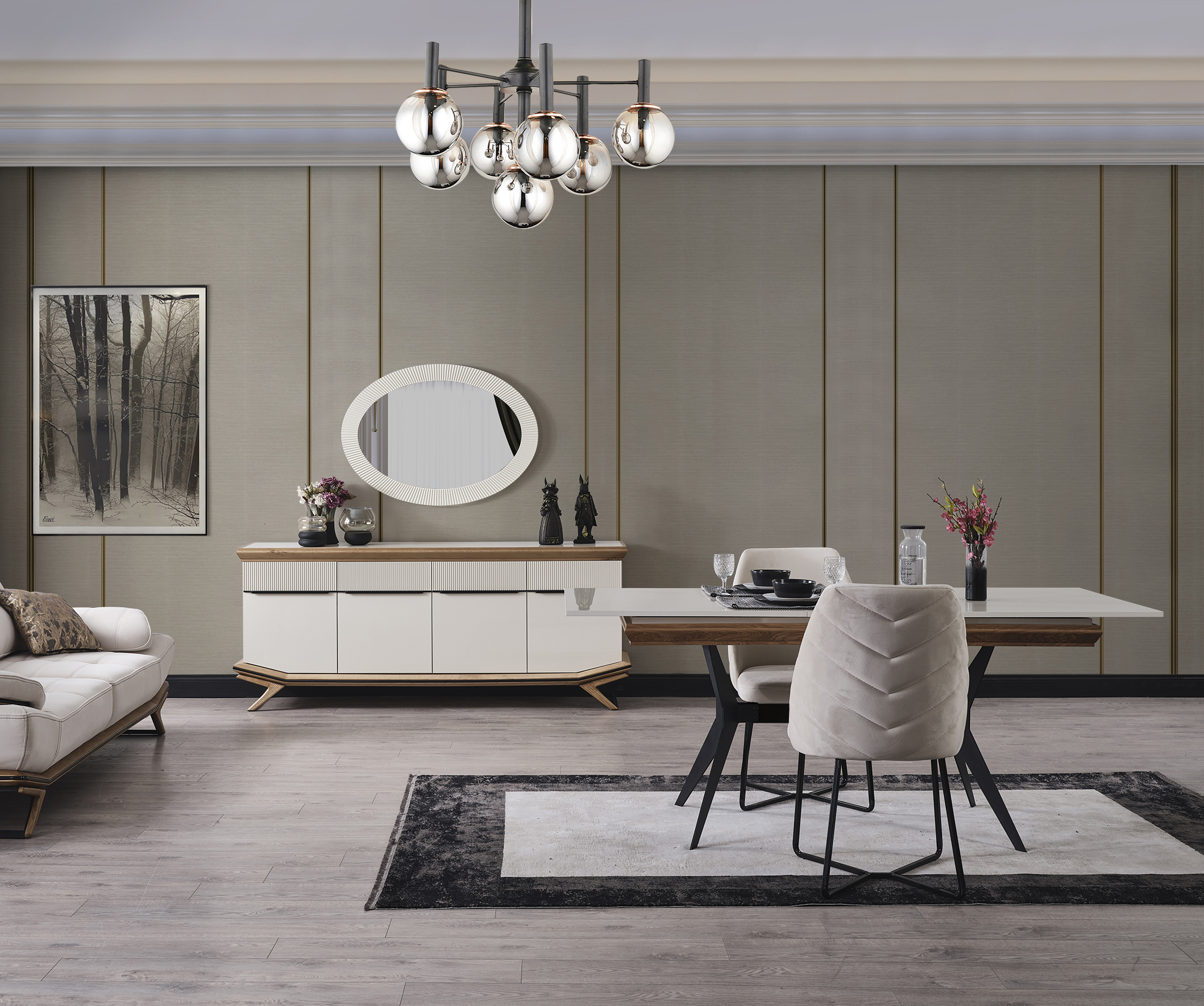 - Takım içeriği Masa, Aynalı Konsol, 6 adet Sandalye‘den oluşmaktadır.